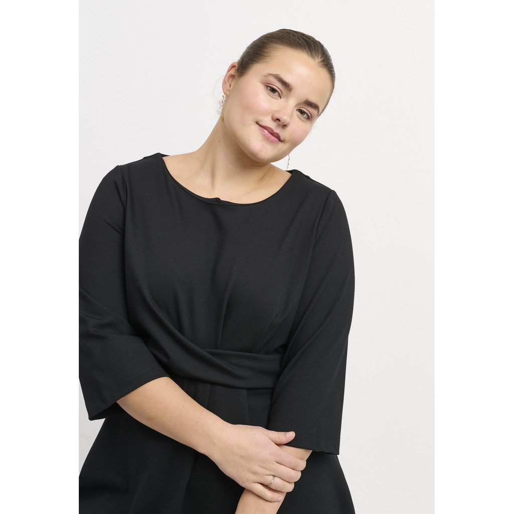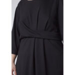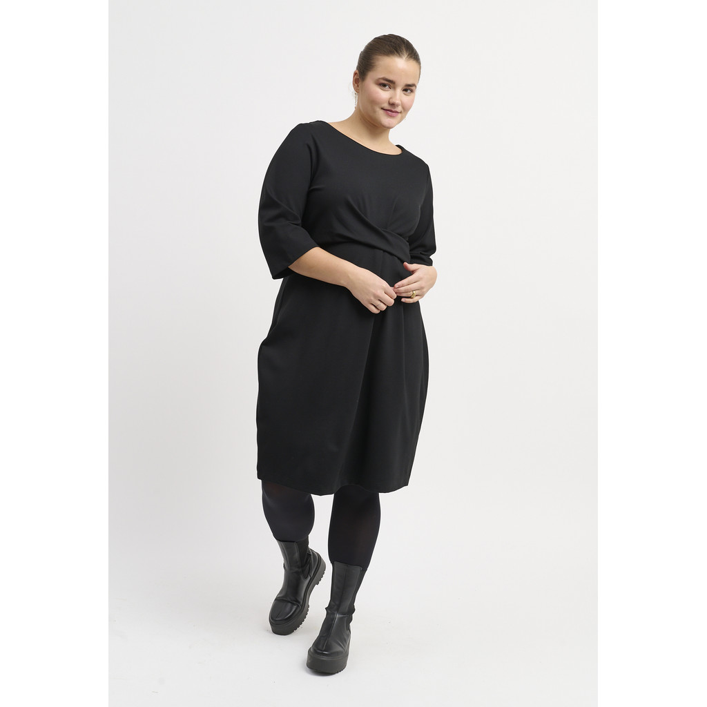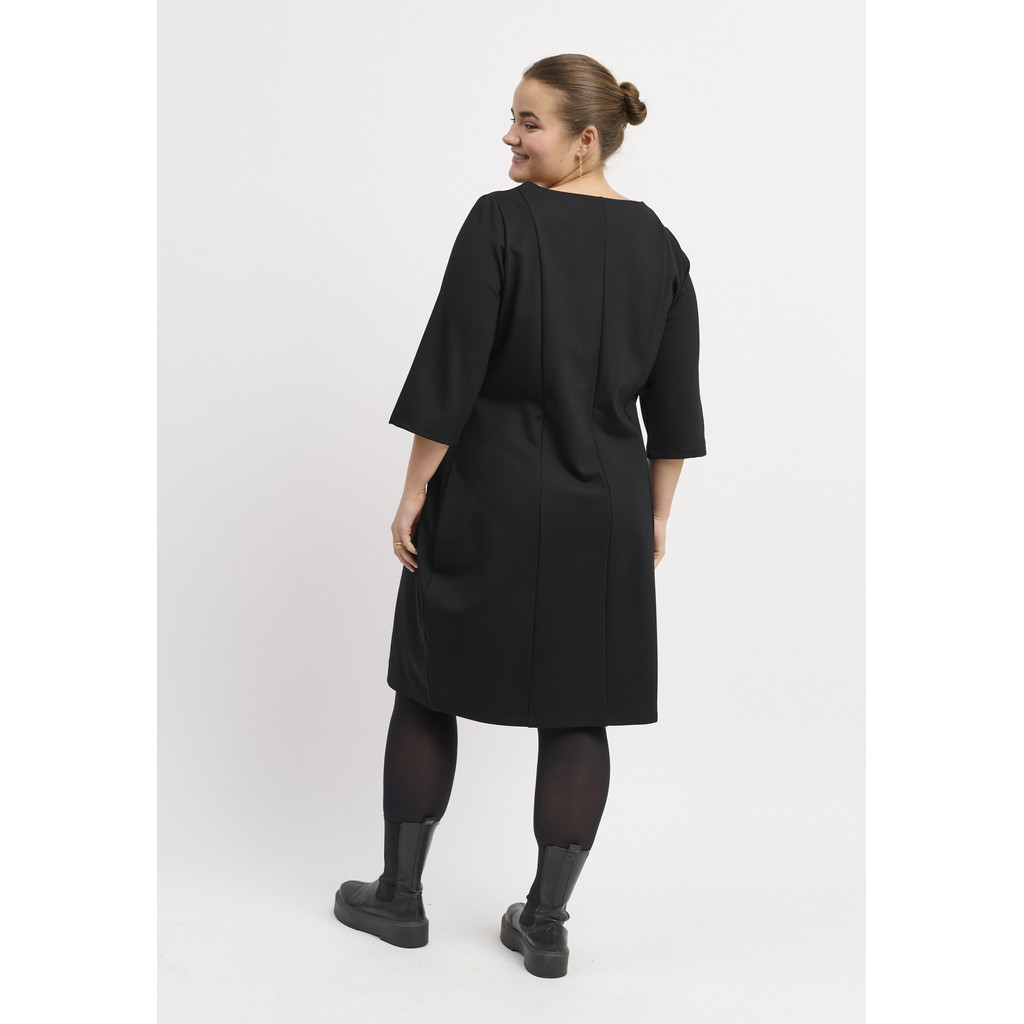 Lahe ja iseloomuga kleit vormitud silueti ja moodsate detailidega. Mustal kangal on pehme tekstuur ja see on mugav ja veniv. Eristuvad õmblused, kaldus küljetaskud ja ümar äär lisavad juhusliku ilme terava nüansiga – ideaalne neile, kes soovivad oma stiiliga silma paista.