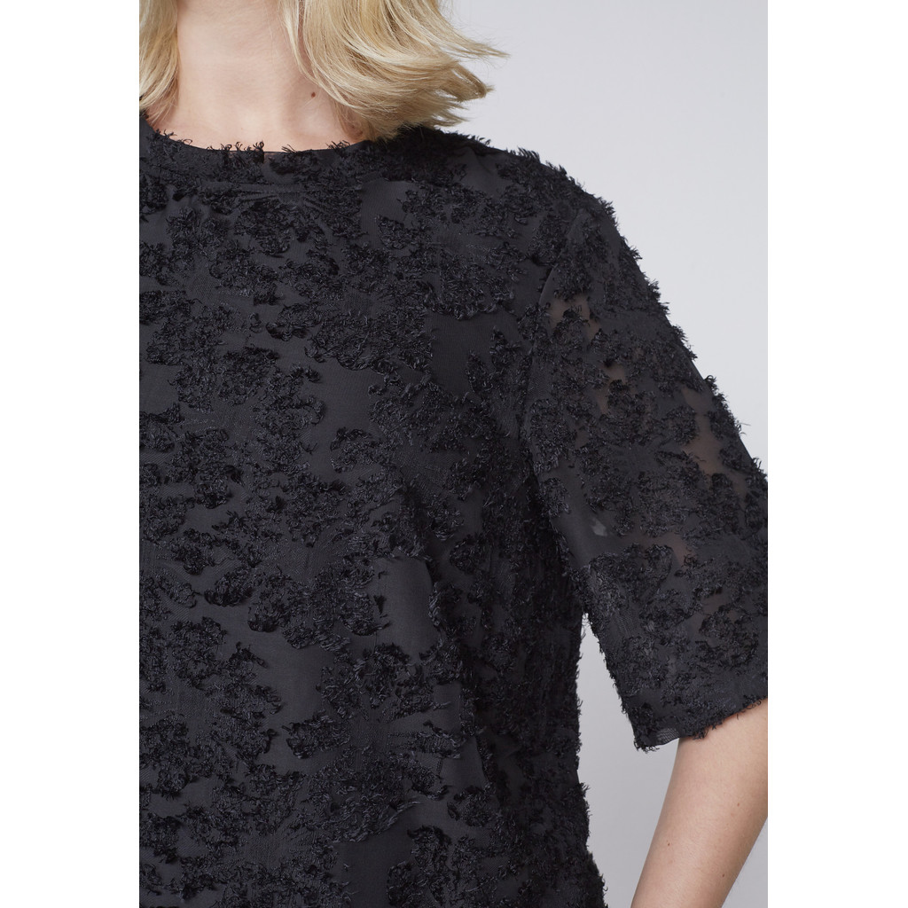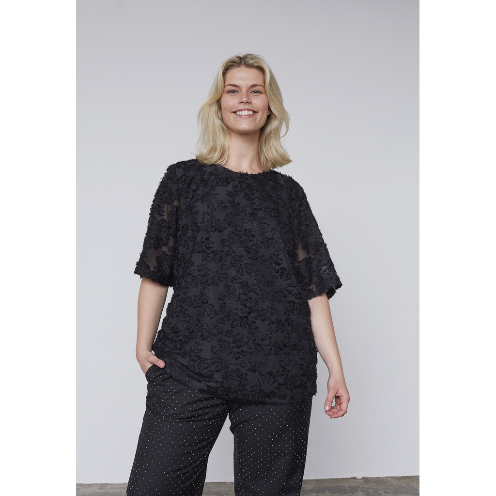 See ADIA pluus on kaunis segu kergusest ja elegantsist. Sirge lõige loob klassikalise silueti, samas kui kerge kangas langeb pehmelt, tagades mugavuse ja kerguse. Peen muster lisab rafineeritust, muutes selle ideaalseks nii igapäevaseks kandmiseks kui ka pidulikumateks sündmusteks.