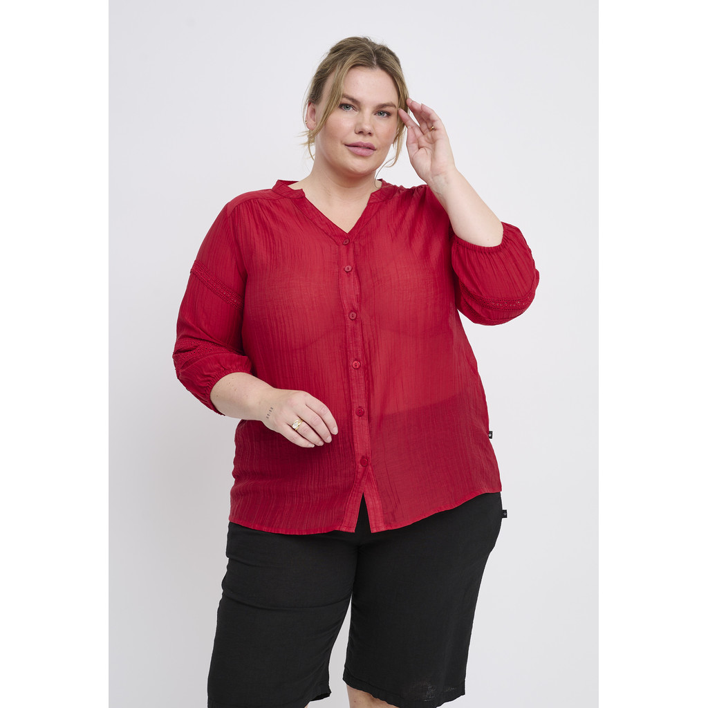 See Adia pluus on lihtsa ja naiseliku välimusega, kerge ja pingevaba siluetiga. See on valmistatud kergest viskoosist, mis langeb pehmelt ümber keha ja loob õhulise ilme. Särgil on V-kaelus, ees nööpkinnis ja pikad varrukad, samas kui A-kujuline lõige pakub meelitavat langemist ja liikumisvabadust.