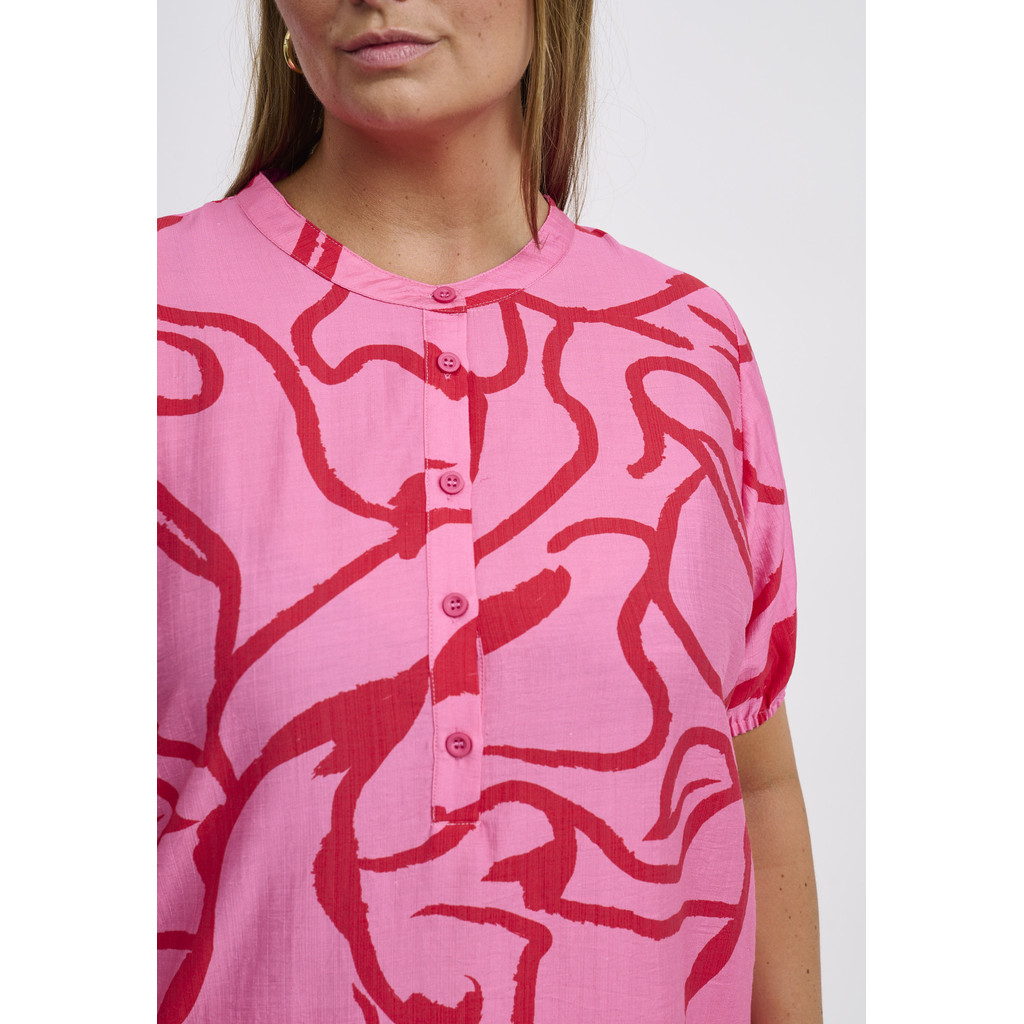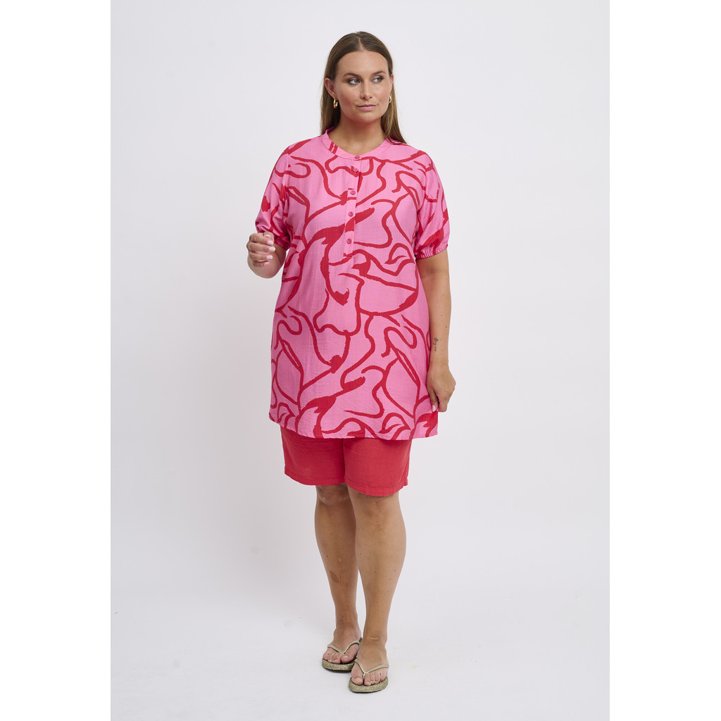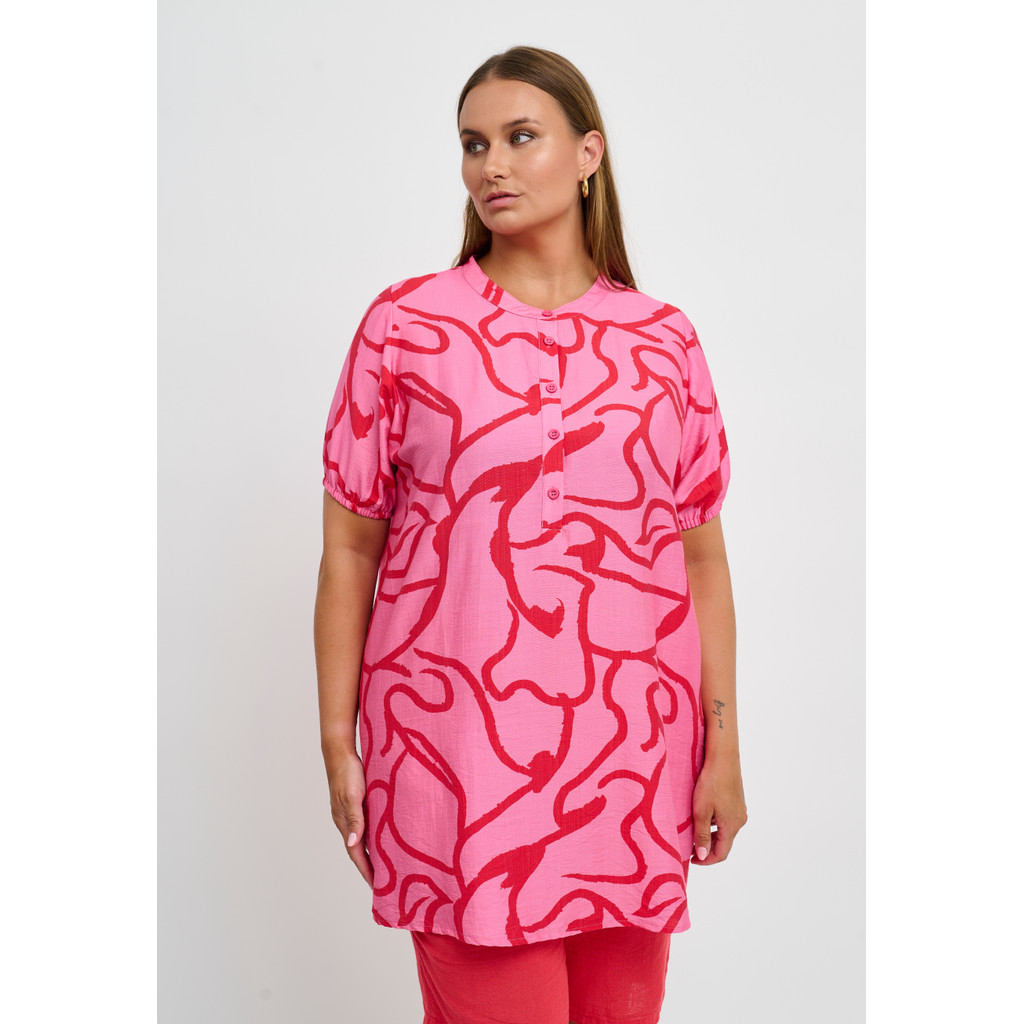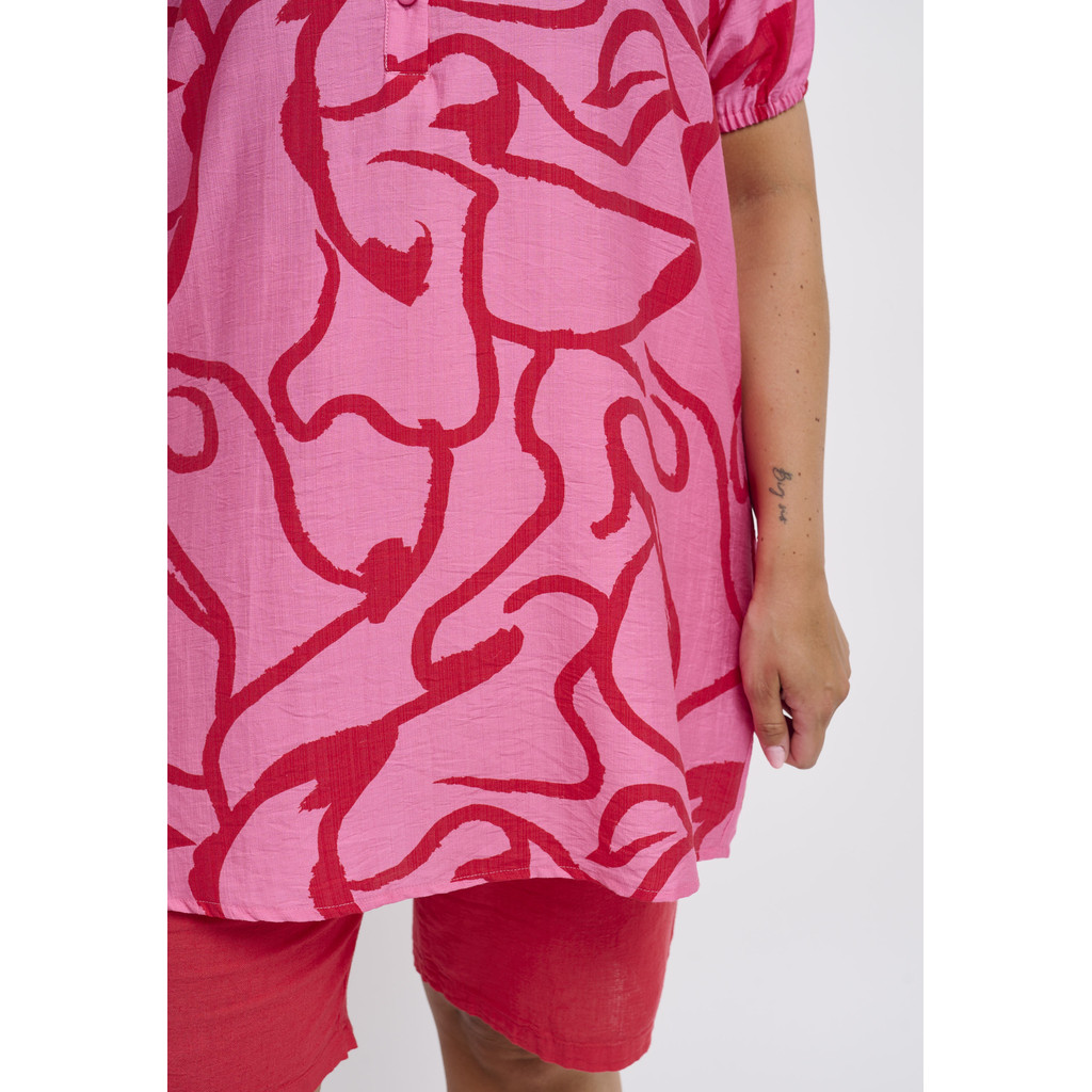 See Adia tuunika on silmatorkava ja graafilise välimusega ning suure dekoratiivse trükimustriga. See on valmistatud kergest viskoosist, mis langeb pehmelt ümber keha ja loob õhulise ilme. Tuunikal on ümar kaelus ja lühikesed varrukad, samas kui A-kujuline lõige loob meelitava silueti, mis annab liikumisvabaduse.