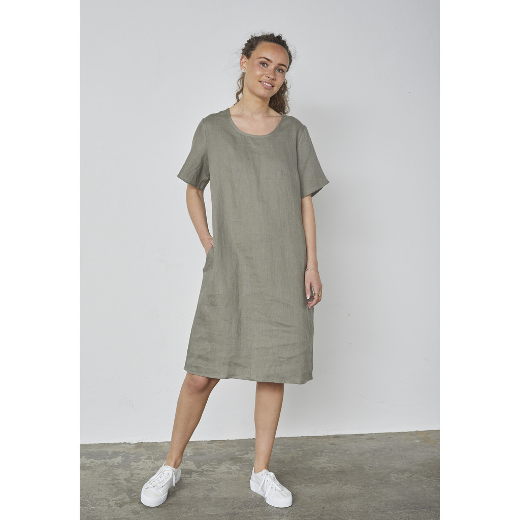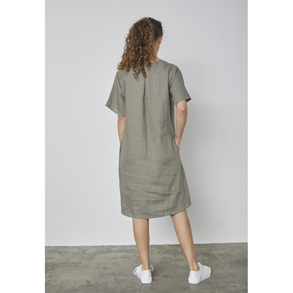 See Eltoni kleit kehastab pingevaba elegantsi ja rafineeritud lihtsust, rõhuasetusega kvaliteedil ja meisterlikkusel. Valmistatud puhtast linasest kangast, pakub see kerget ja hingavat tunnet loomulikult eksklusiivse tekstuuriga. Puhast disaini täiustavad peened detailid ja lõdvestunud ülisuur siluett, mis langeb kaunilt, andes elegantse ja moodsa ilme.
