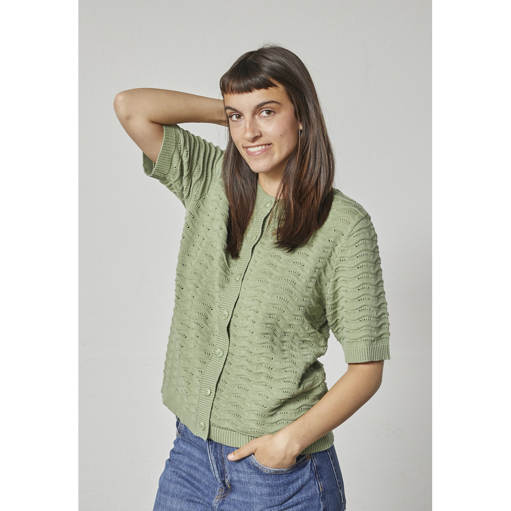 See Lindi kootud kardigan paistab silma omanäolisema välimusega, kus tekstuur ja pind on kesksel kohal. Puhtast puuvillast valmistatud kardigan on kerge ja mugav ning seda on mugav kanda kogu päeva vältel. Tekstuurne kudum ja avatud esiosa loovad pingevaba, kuid samas iseloomuliku välimuse.
