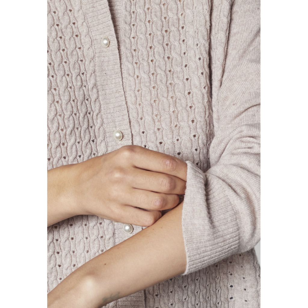 See Lindi kootud kardigan on pehme ja elegantne klassika, millest saab kiiresti garderoobi lemmik. Õrn tekstuurne muster lisab naiselikku ja harmoonilist ilmet, samas kui kerge ja soe kudum muudab selle kandmise imeliselt mugavaks – nii igapäevaseks kandmiseks kui ka jahedamatel päevadel.