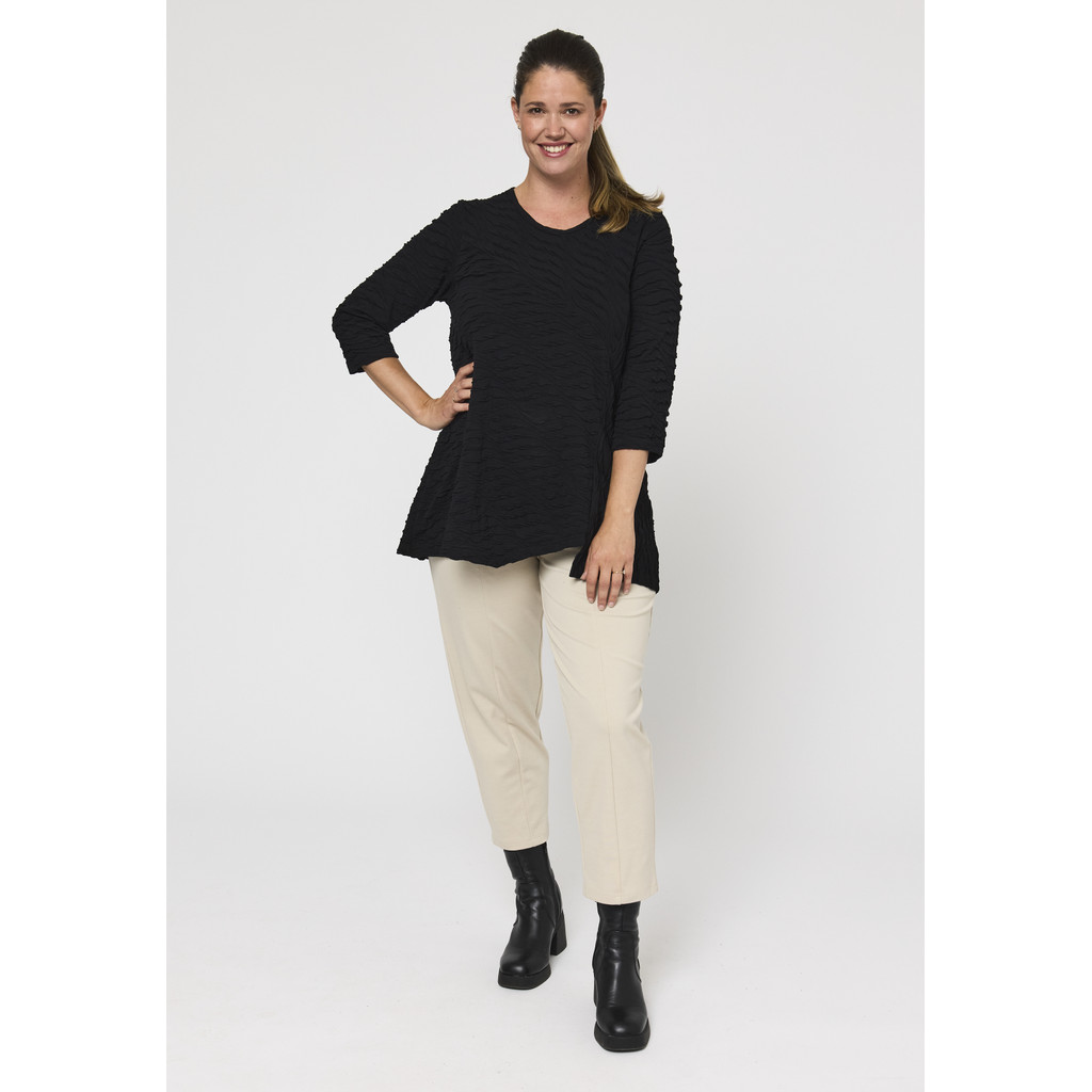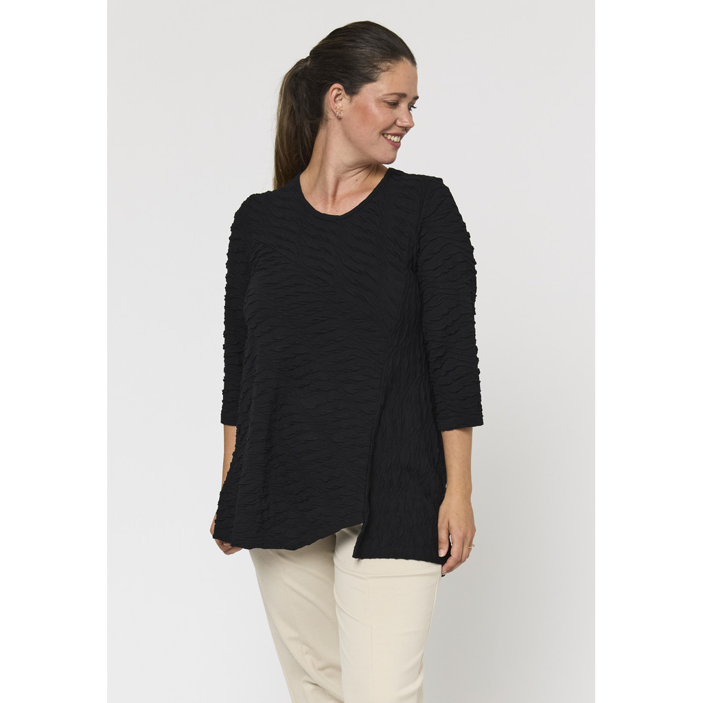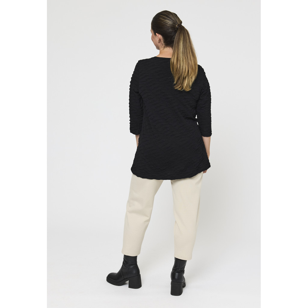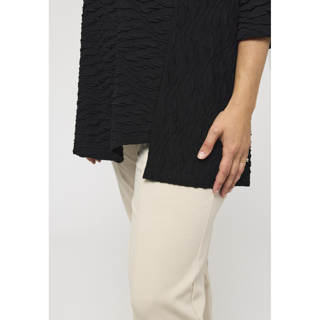 See A-kujuline pluus on disainitud mugavust ja stiili silmas pidades. Kerge ja veniv materjal tagab mugava istuvuse, samas kui peen muster ja kolmveerandvarrukad muudavad selle ideaalseks nii igapäevaseks kandmiseks kui ka erilisteks sündmusteks. Ümar kaelus ja lai siluett loovad moodsa ja naiseliku ilme.