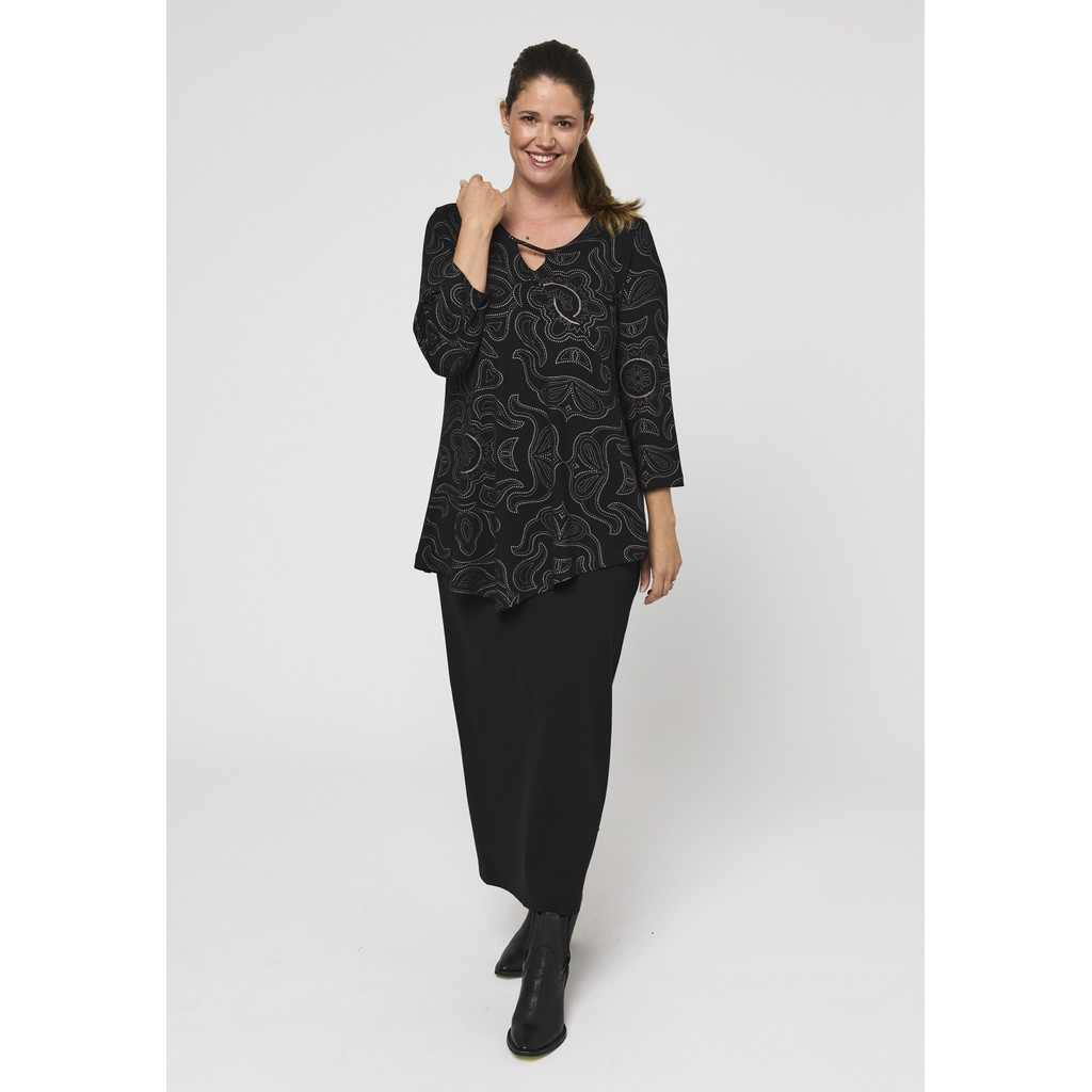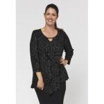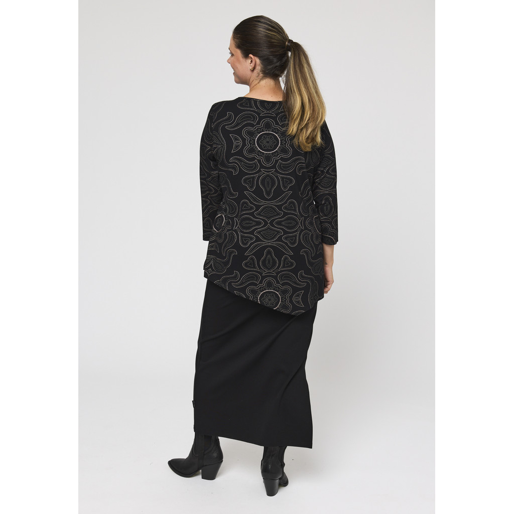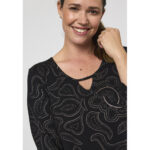 See pluus ühendab elegantse mustri klassikalise A-lõikelise lõikega, mis langeb kaunilt üle keha. Pehme ja veniv viskooskangas tagab nii liikumisvabaduse kui ka meelitava silueti, andes sulle stiili, mis tundub kerge, kuid näeb välja peen. Usaldusväärne valik, kui soovid pluusi, mis sobib paljudeks puhkudeks.