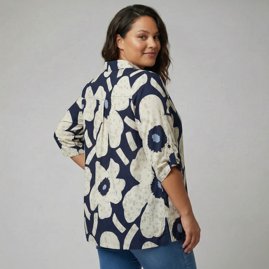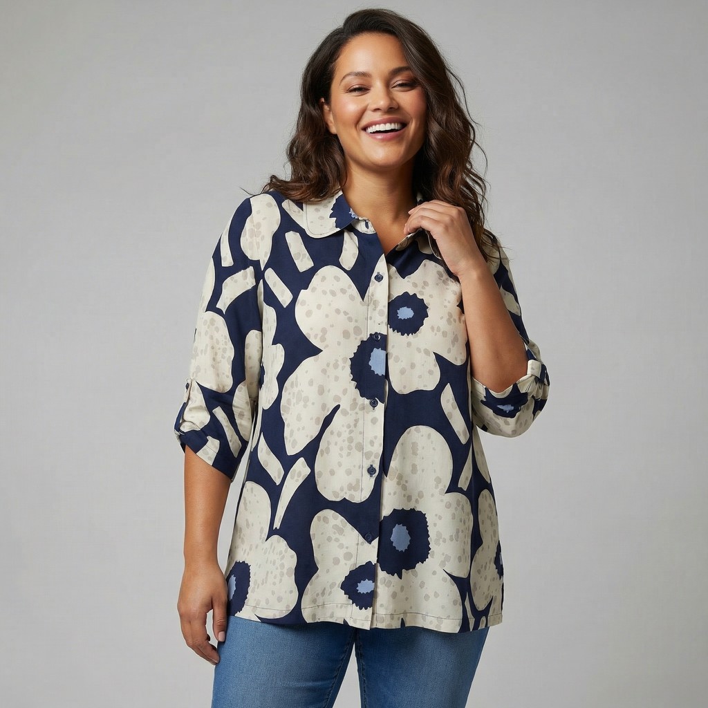 Moodne pluus julge graafilise trükimustriga, mis loob puhta, kuid samas omanäolise ilme. Kerge viskoosi ja nailoni segu on naha vastas mugav ja pakub kaunist, sujuvat langemist.