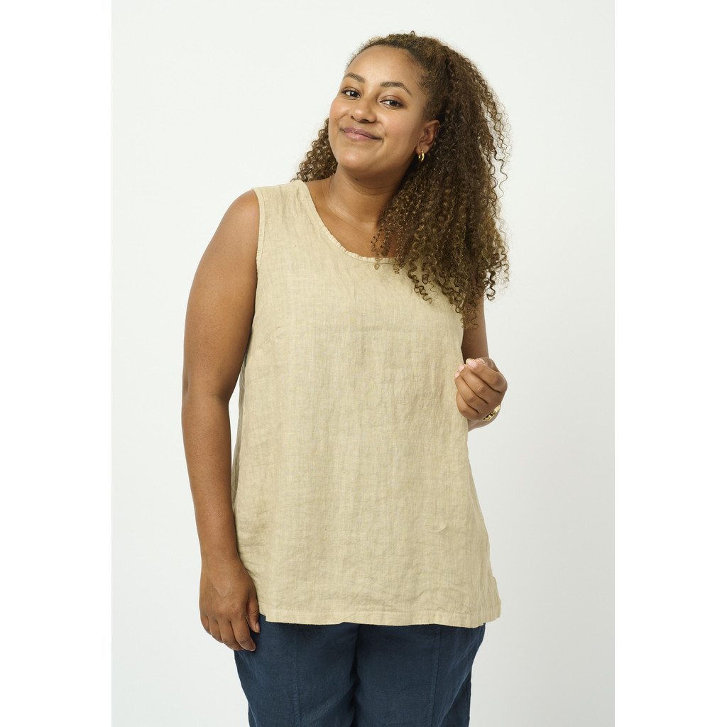 Lihtne ja stiilne topp, mis sobib ideaalselt soojadeks päevadeks. Topil on avar A-kujuline istuvus, mis pakub nii liikumisvabadust kui ka mugavust. Varrukateta siluett ja ümmargune kaelus muudavad selle kergeks ja õhuliseks, samas kui minimalistlik disain tagab, et see sobib hõlpsalt iga garderoobiga.