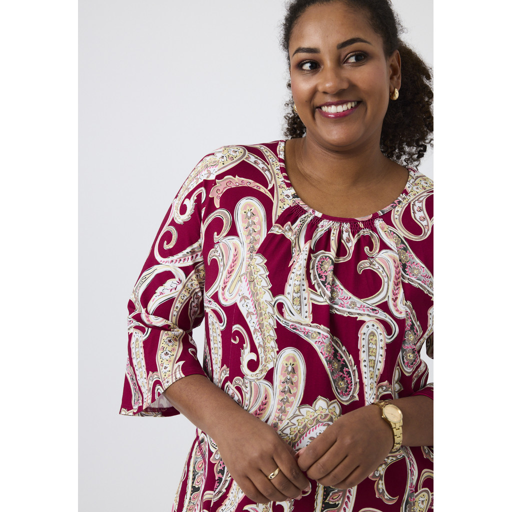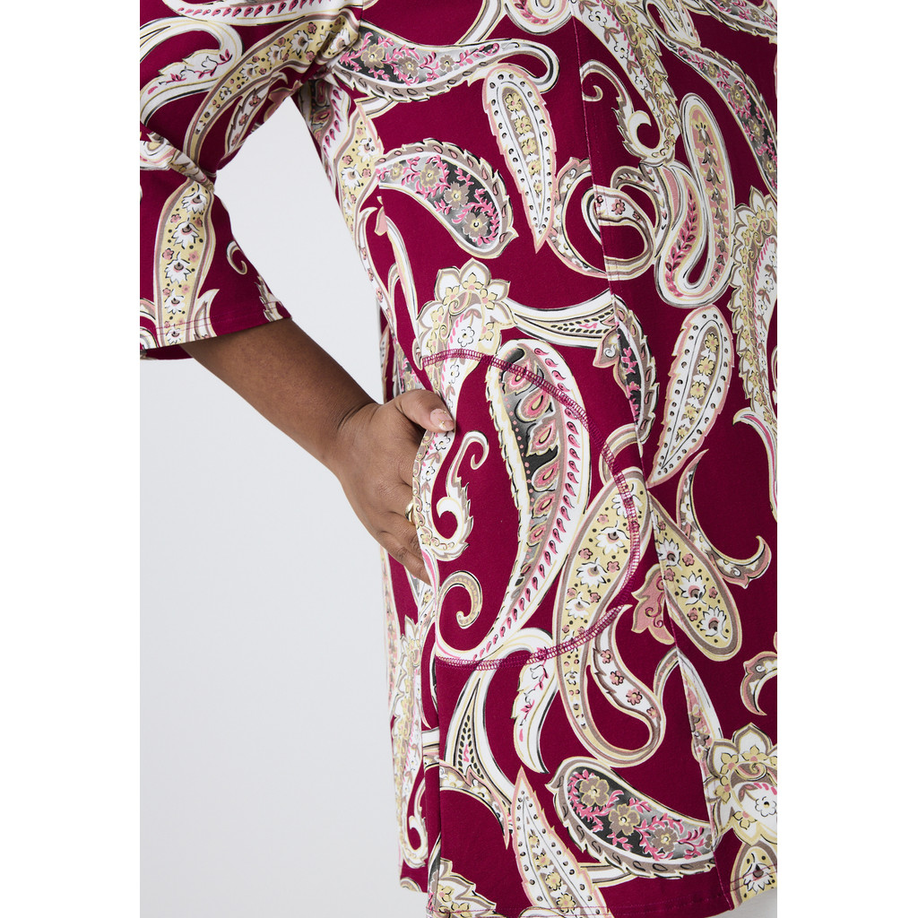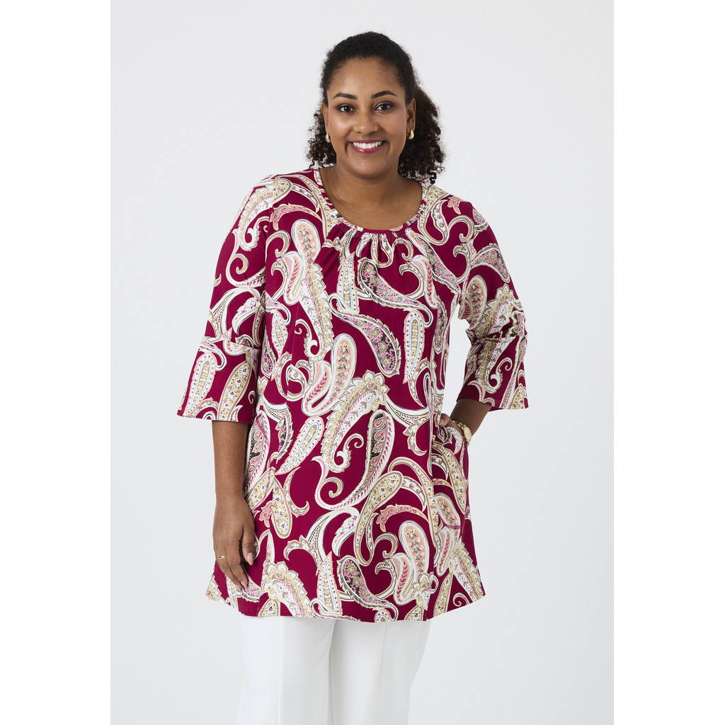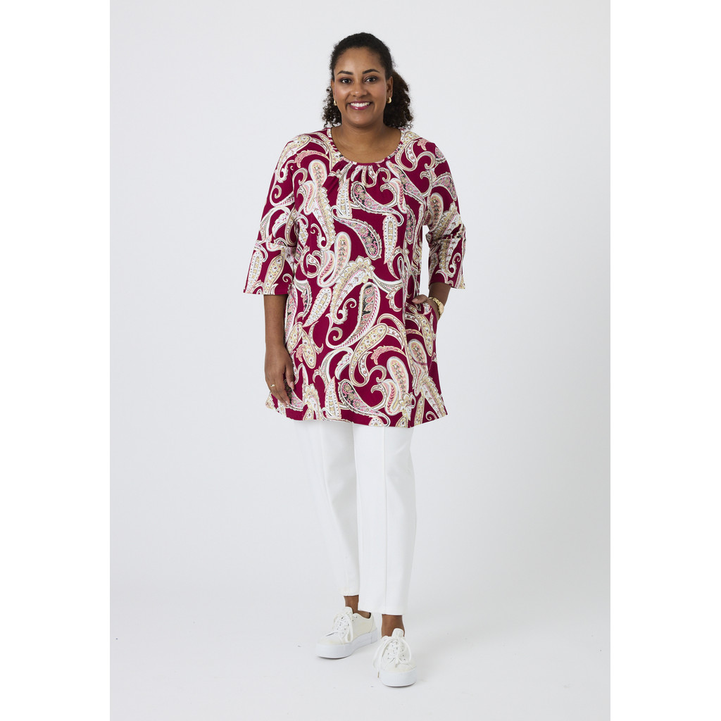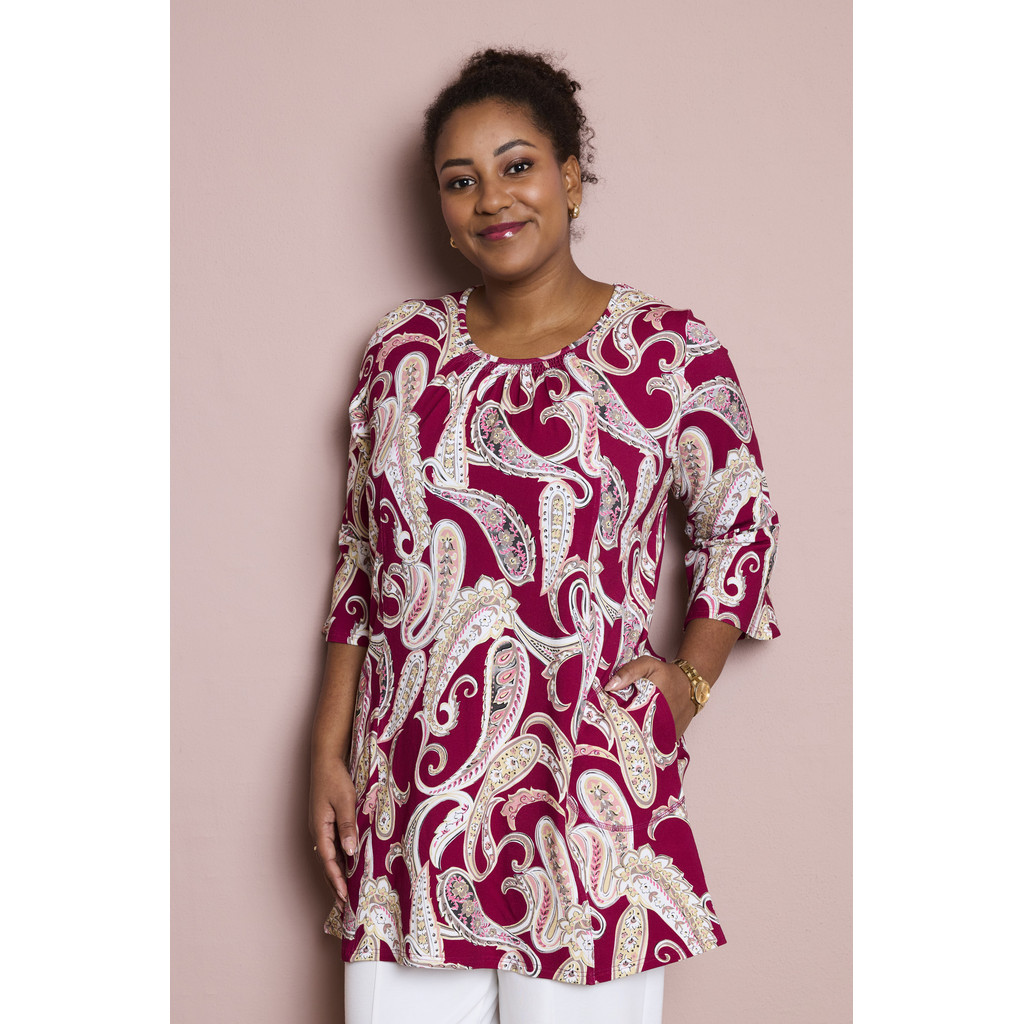 See mustriline Pont Neufi tuunika on erksa ja naiseliku välimusega ning vaba A-kujulise lõikega. Pehme viskooskangas kergelt veniva lõikega tagab mugava langemise ja liikumisvabaduse. Dekoratiivne muster lisab iseloomu, samas kui puhas lõige muudab tuunika erinevateks sündmusteks hõlpsasti stiliseeritavaks.