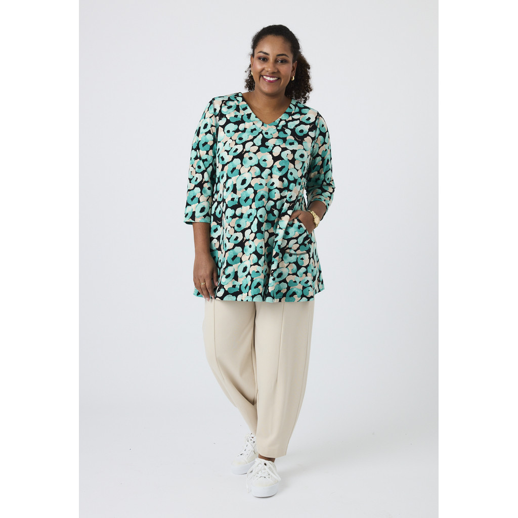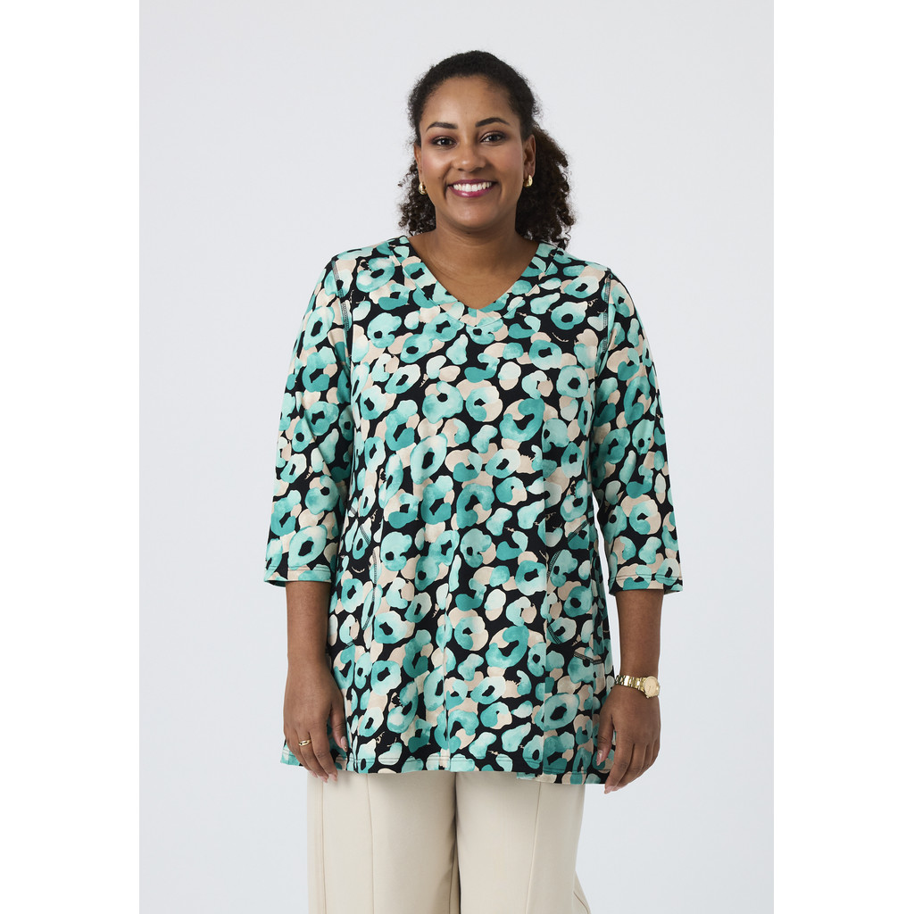 See Pont Neufi tuunika on värske ja elava mustriga, mis annab sellele mudelile kerge ja energilise ilme. A-lõikeline lõige loob avara langevuse, mis järgib keha ilma piiravat tunnet tundmata, võimaldades päeva jooksul liikumisvabadust. Pehme ja veniv viskoosmaterjal on naha vastas mugav ja tagab meeldiva istuvuse.